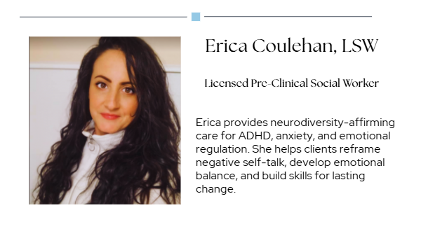 Each of our clinicians brings specialized training, diverse experience, and a deep commitment to helping clients navigate ADHD, anxiety, trauma, and life transitions with empathy and skill.